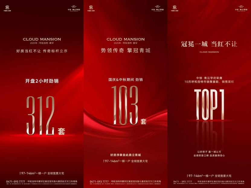 呼和浩特的中铁·青云学府2小时劲销超3亿,去化率破90%、刷新当地纪录,还斩获国际设计大奖;苏州的中铁·青云府首开登顶区域销冠,劲销1.8亿,成为吴江首个热销的四代住宅。