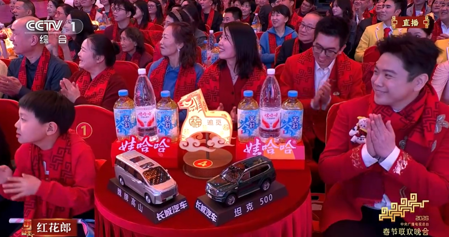 长城今年有两款车出现在春晚嘉宾桌上,分别是魏牌高山和坦克500。在《探班春晚》环节,魏牌高山也作为摆渡车进行了植入,保障明星和工作人员的通勤和休息,至于坦克500则肩负了新媒体指定用车的身份。