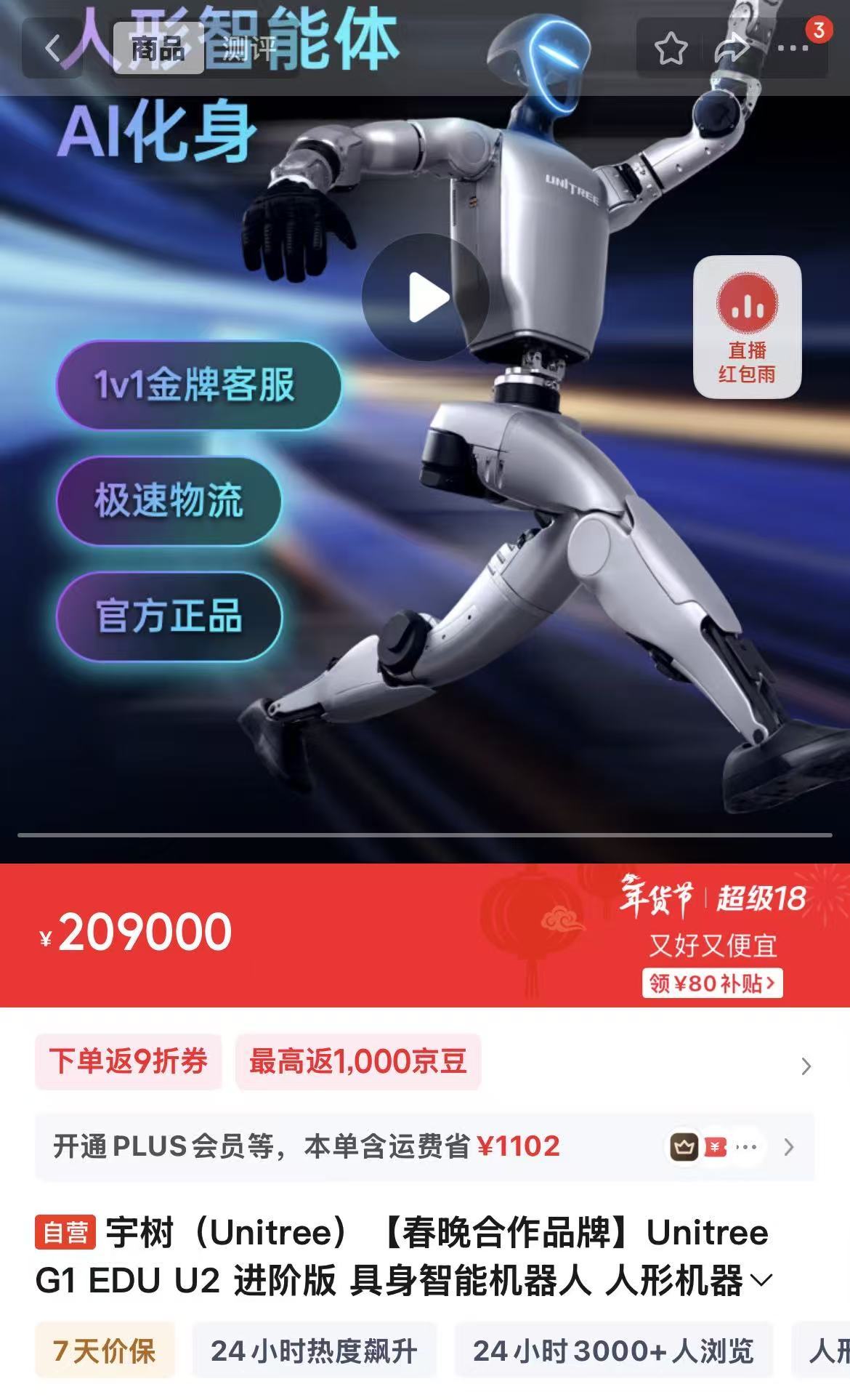 春晚的热度从未局限于电视屏幕,迅速传导至消费市场,掀起一场“机器人抢购热潮”。