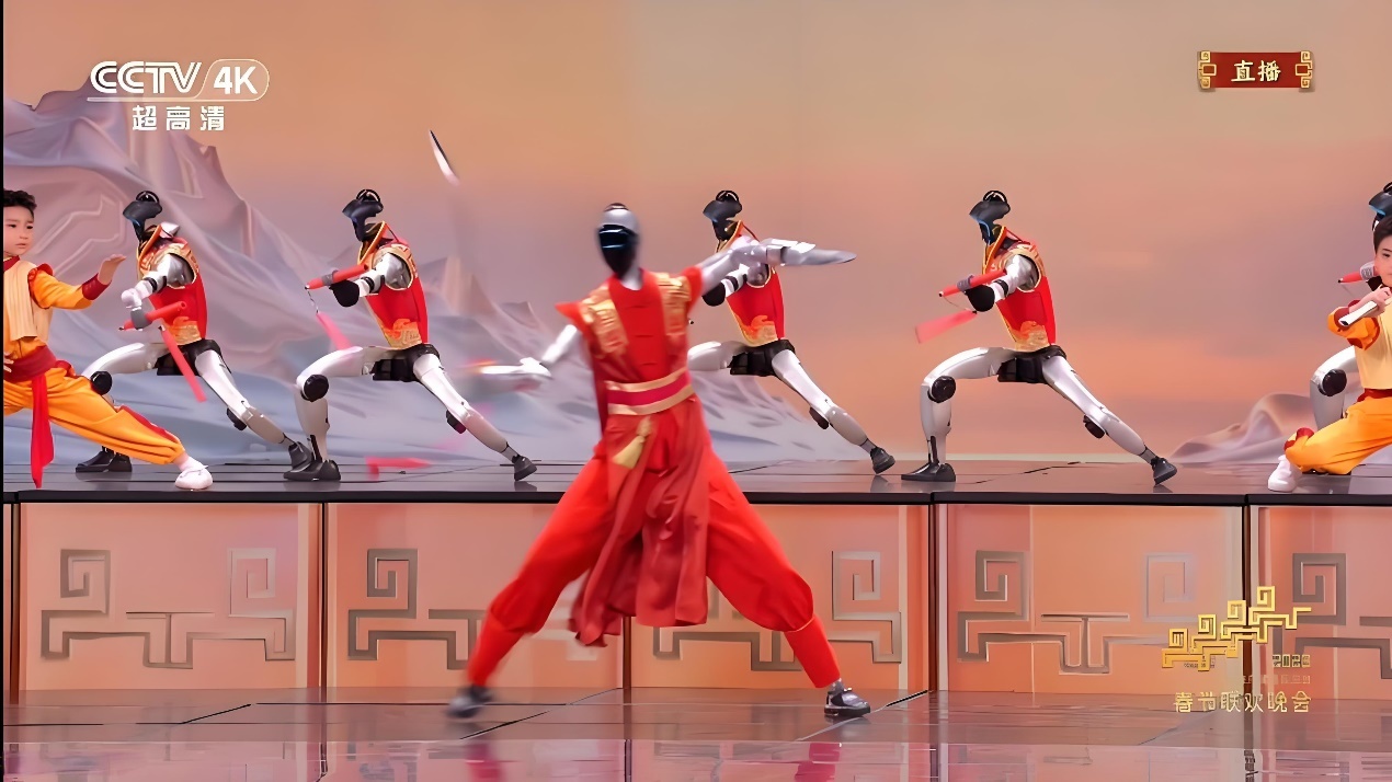 它们在小品中与蔡明同台搭戏,化身“赛博武者”耍棍舞剑,动作精准流畅、灵动十足,甫一亮相便点燃全民热情。
