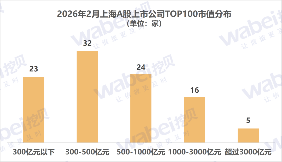 2026年2月上海A股上市公司市值TOP100:5家公司市值超过3000亿元