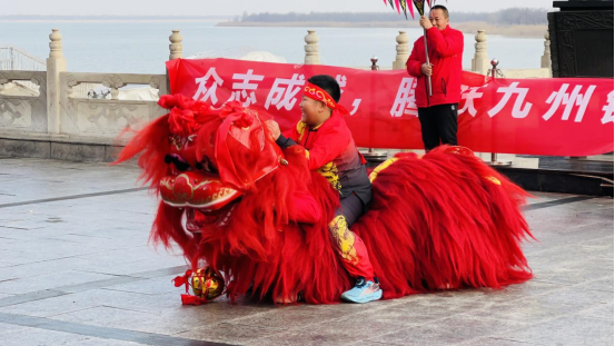 “看舞龙舞狮,是咱过年的老传统。小朋友跟狮子的互动,特别有意思。”家住大邱庄镇的李先生一家三口早早就来到广场等候。