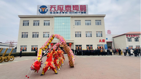 龙狮送福,好运连连喜气扬。在天津市天应泰钢管有限公司,舞龙舞狮表演轮番登场,隆隆鼓声中,队员们默契配合,将舞龙醒狮神态展现得淋漓尽致,引得企业员工驻足喝彩。