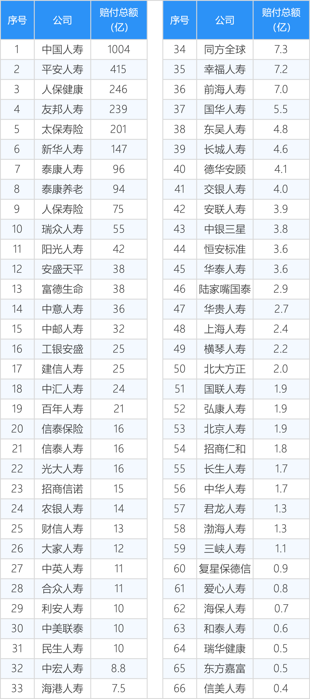 其中66家寿险公布了赔付金额