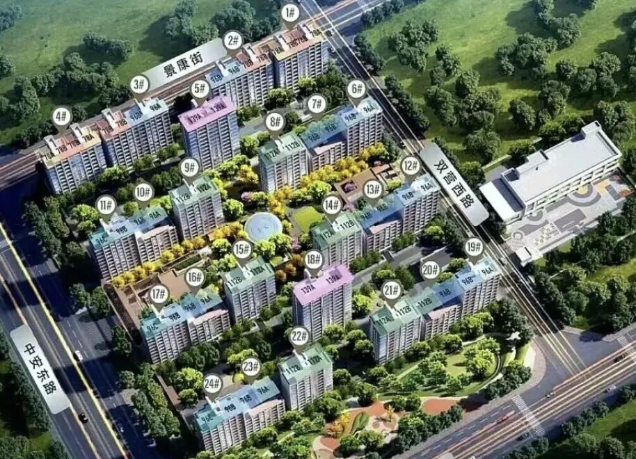 96㎡主力户型:共260套,占比约44.83%,分布在2#西侧两个单元、3#东侧两个单元、6#、7#、10#、11#、12#、13#、16#、17#、19#、20#、23#、24#。