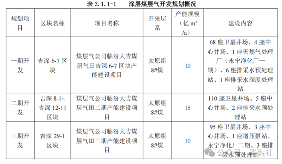 三期项目开采层系均为太原组8#煤,总产能规模为35亿立方米。一期开发吉深6-7区块,项目投资104.11亿元,产能规模10亿立方米,目前正在建设中。临汾分公司将依托一期项目建设二期项目,二期项目规模最大。