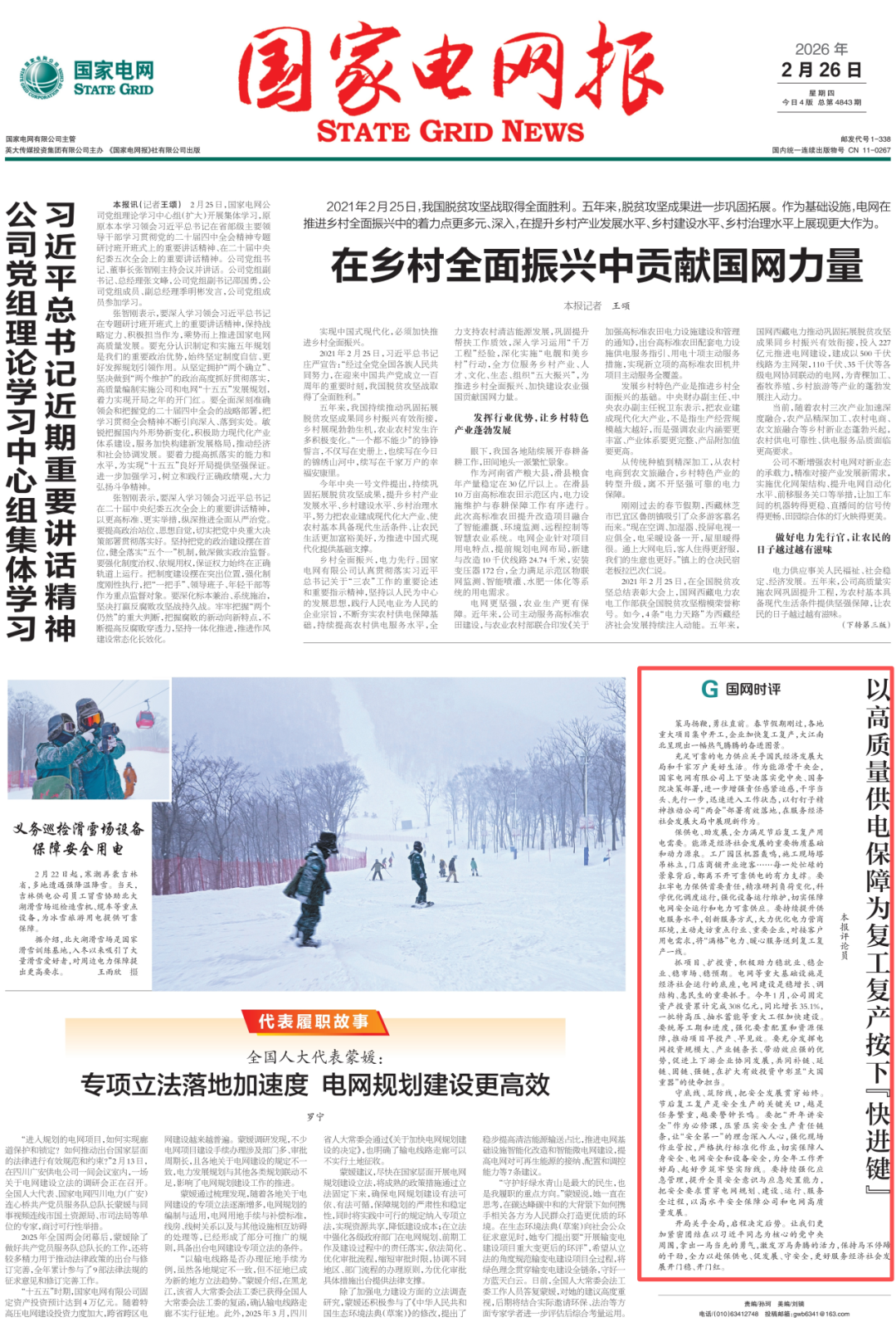 开局关乎全局,启程决定后势。让我们更加紧密团结在以习近平同志为核心的党中央周围,拿出一马当先的勇气,激发万马奔腾的活力,保持马不停蹄的干劲,全力以赴保供电、促发展、守安全,更好服务经济社会发展开门稳、开门红。