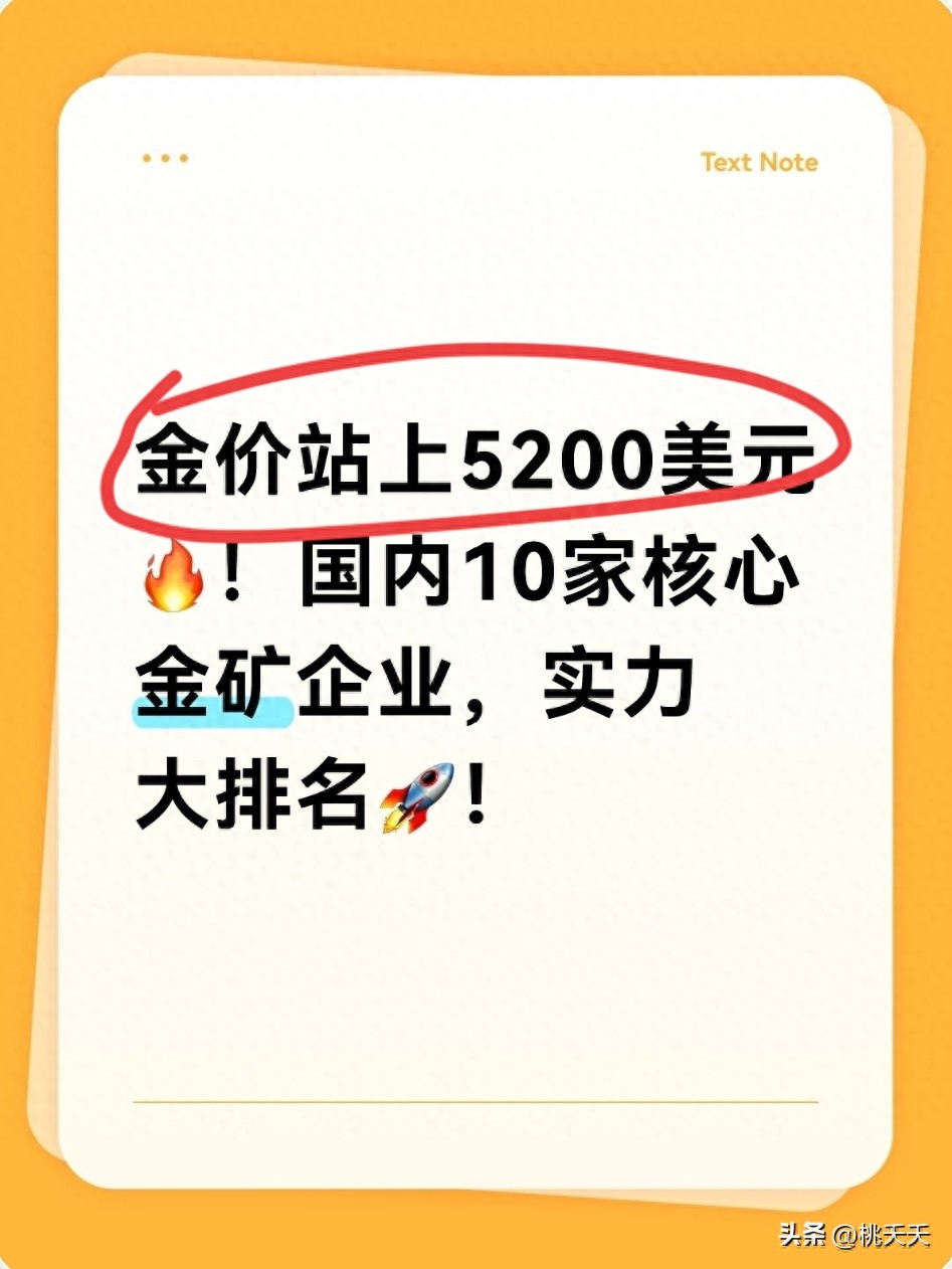 金价站上5200美元!国内10家核心金矿企业,实力大排名