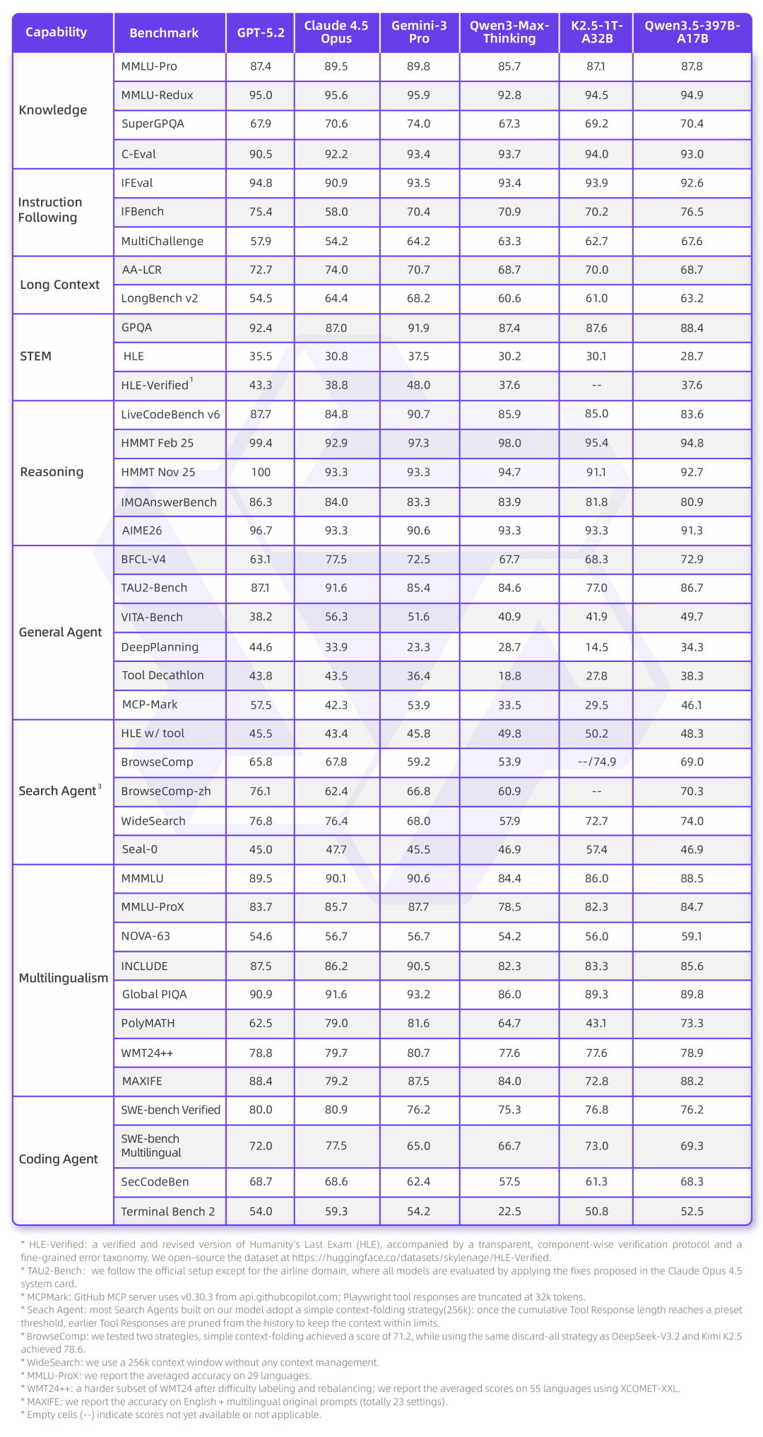 千问在多种评估任务与模态下,对 Qwen3.5 与前沿模型进行全面对比评估。