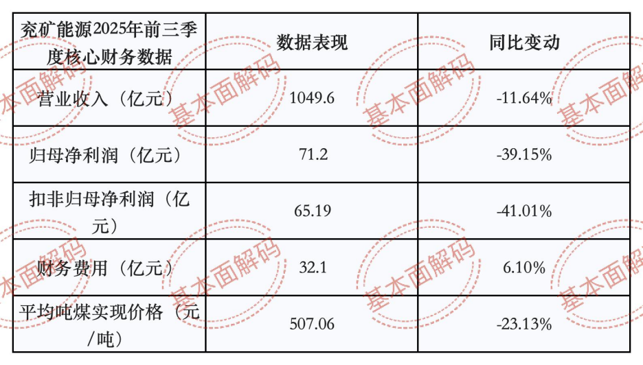 数据来源:兖矿能源2025年三季报及业绩快报
