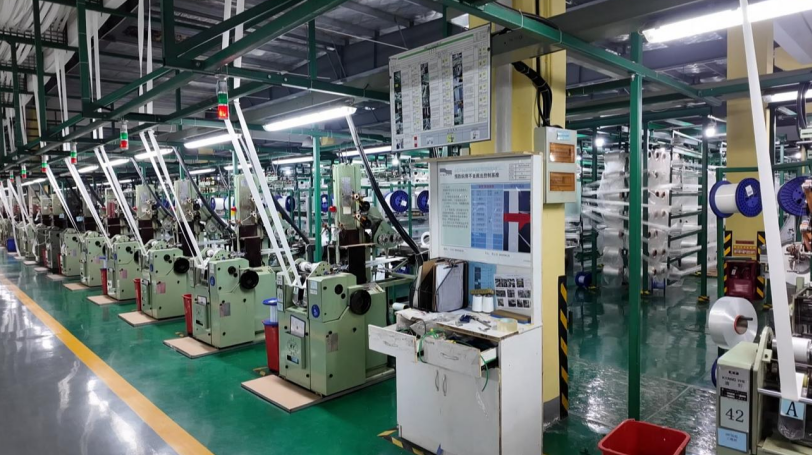 同样热火朝天的生产场景,在郎溪飞马工业织品有限公司织造车间上演。自动化织机高速飞转,红绿指示灯交替闪烁,一卷卷汽车安全带织带如银色瀑布倾泻而下。工人们穿梭其间,仔细巡查设备运行状态,认真核对每一项工艺参数,一丝不苟地守护着生产流程的顺畅与安全。