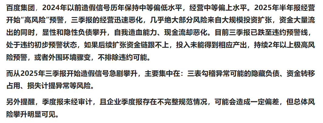 百度集团历年财报造假信号及经营画像