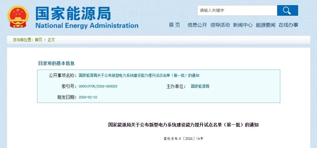 国家能源局关于公布新型电力系统建设能力提升试点名单(第一批)的通知