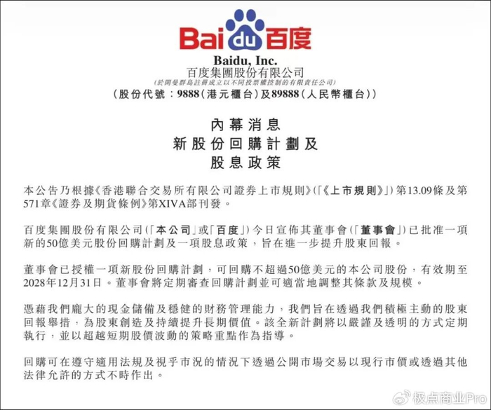 今天的百度,正站在技术冒险与商业兑现的交汇点。它用50亿美元的回购计划告诉市场:AI不是画给未来的大饼,而是此刻就能兑换的真金白银。