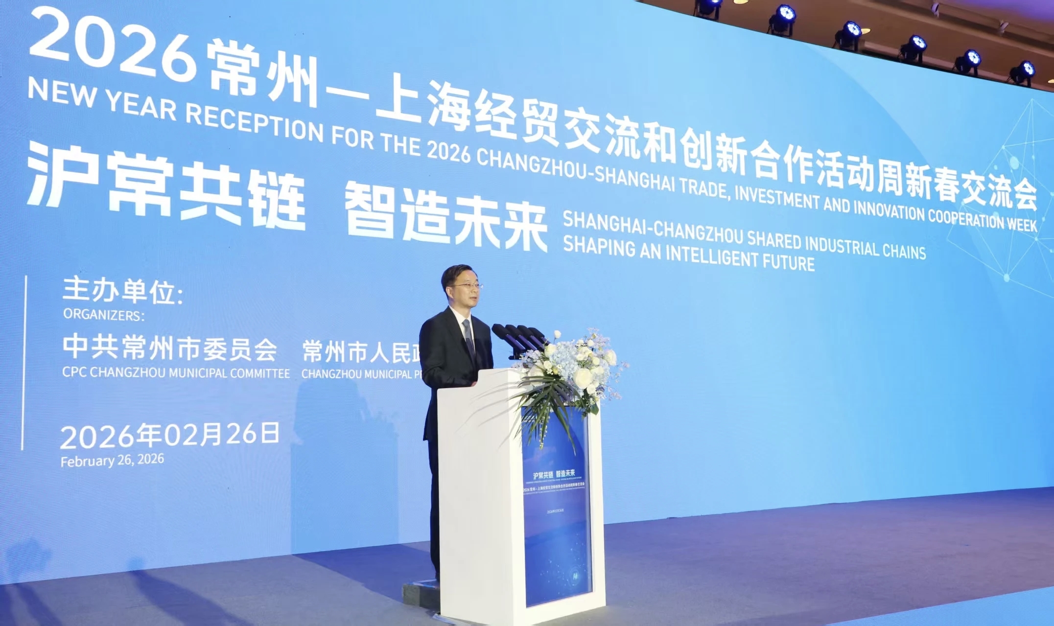 常州市委书记王剑锋在致辞中表示,上海是改革开放前沿阵地、高质量发展标杆示范,“五个中心”建设动能强劲,持续引领长三角迈向世界级城市群。常州作为长三角重要中心城市,近年来全方位服务和融入上海大都市圈,经济社会保持稳中有进、向新向优发展态势。