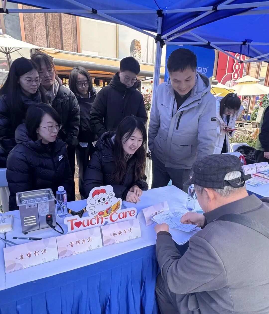 由市劳模倪伟带队,携手永安百货团总支,积极组织青年员工参与南京东路街道、南京路商圈党建联席会议等单位组织开展的各类志愿服务活动,为市民免费提供黄金首饰超声波清洗、皮带打孔、眼镜清洁等特色服务。这支由劳模领衔、党员带头、青年接力的服务队,让百年永安“顾客至上”的服务理念在新时代绽放新光彩。