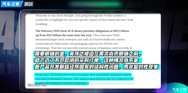 但是英伟达可以说是all in芯片了。英伟达为满足人工智能芯片需求,提前锁定大量不可撤销的供应链产能。美国知名投资人,也就是美国电影《大空头》的原型人物,迈克尔·伯里表示,英伟达正在把自己置于危险境地,这项采购会吃掉英伟达952亿美元的现金流。一旦AI热潮消退,英伟达将面临灾难性的财务打击。