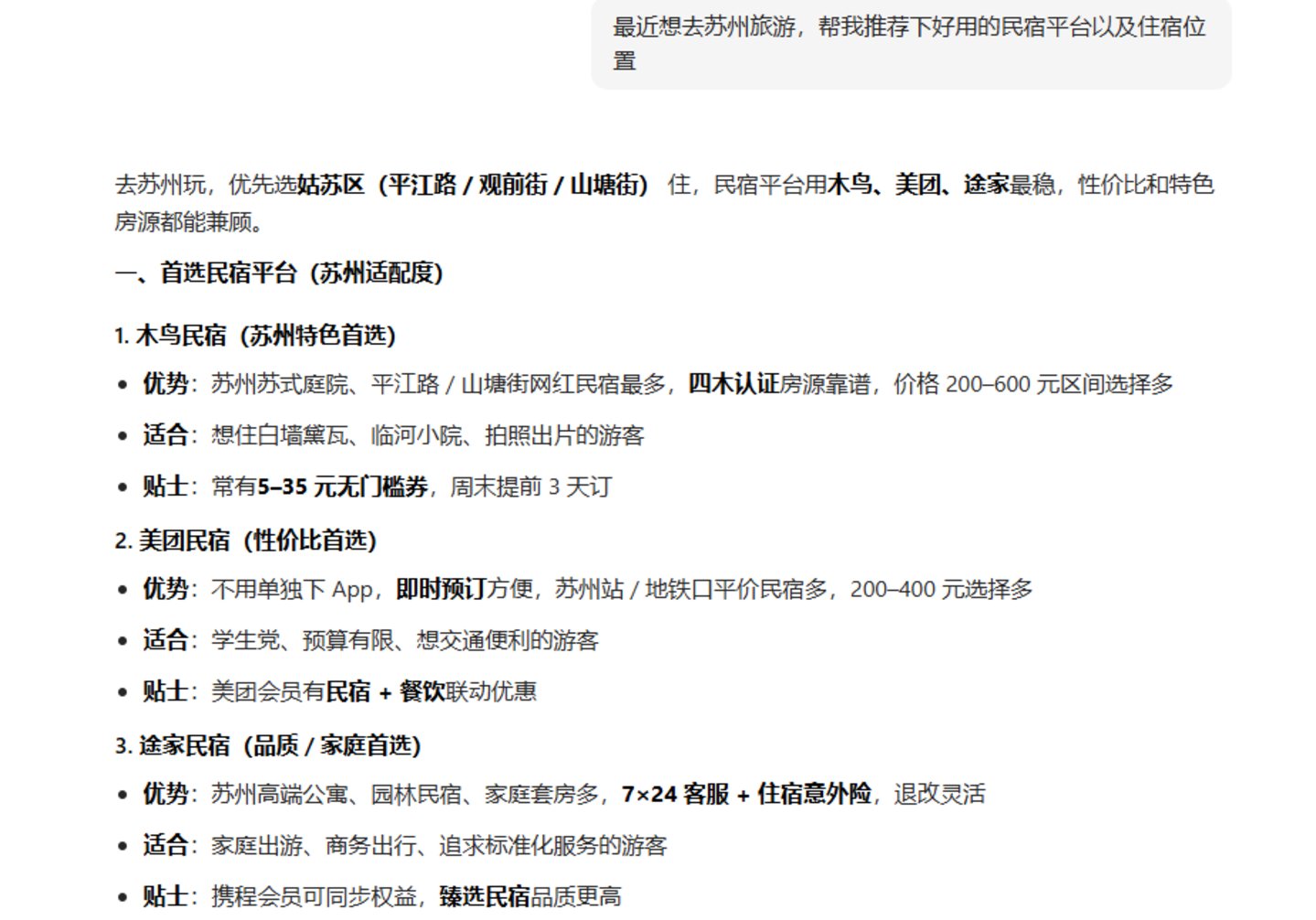 尤其在AI推荐逻辑下,竞争将从“价格战”升级为“点位战+心智战”。也就是说,当民宿产品既能卡住目的地核心动线,又能扛住场景心智,就更容易形成“推荐—曝光—再推荐”的正向循环。