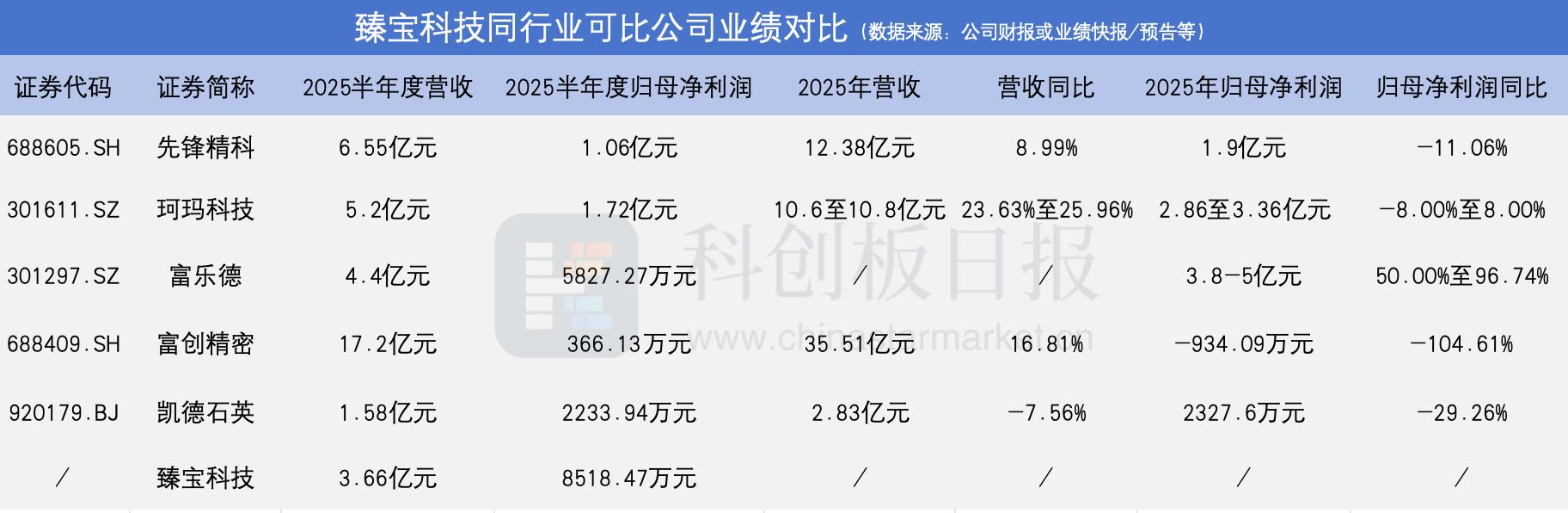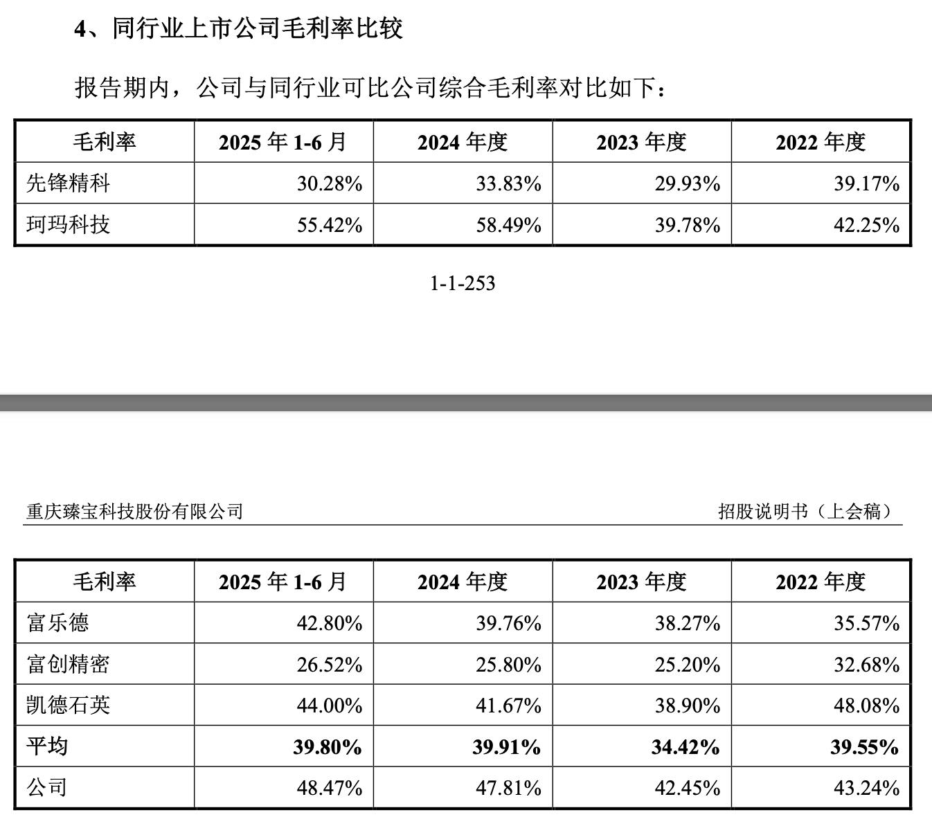 从毛利率角度看,臻宝科技2025年上半年的综合毛利率为48.47%,低于珂玛科技的55.42%,显著高于同行业可比上市公司平均水平48.47%。
