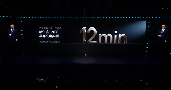 并且,比亚迪第二代刀片电池还一举解决了低温充电慢的痛点,在哈尔滨-20℃的极寒充电实测中,从20%充到97%,全程只需12分钟。