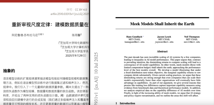 现在,这个前提正在松动。MIT 的研究估计,效率提升将使中等硬件上的模型在 5 到 10 年内逐步追平最大最贵的模型。芝加哥大学的研究表示,数据质量正在取代数据规模成为核心竞争维度。