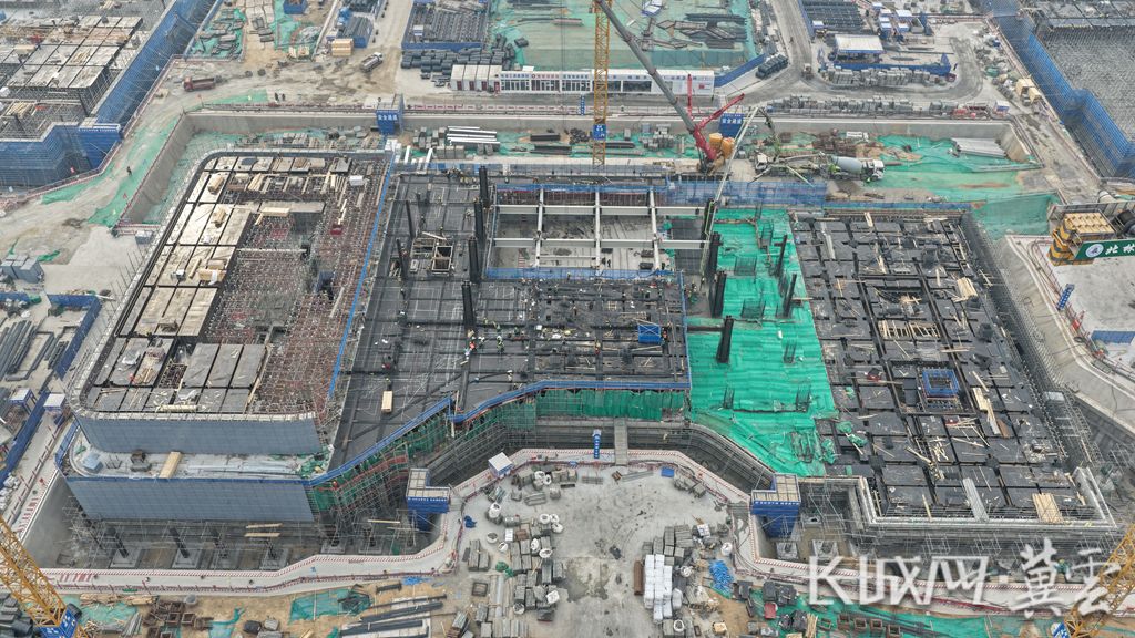 走进起步区第五组团北部,82.88万平方米的建筑群正“茁壮生长”。一期三个组团加上国家林草种质资源设施保存库,全部单体都已开工。塔吊转得欢,机械轰鸣响,工人们穿梭其间,像在给这座城市“搭积木”。