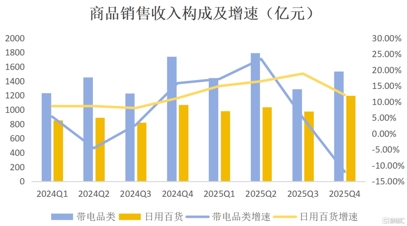 当然2025年第四季度带电品类销售额同比有所下降,市场难免会有一些疑虑。但这件事,得放在更大的背景里看。