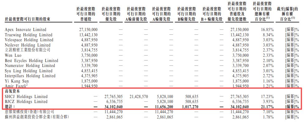 IPO前,高瓴资本通过相关实体合计持股21.17%,为最大外部投资方。同时,腾讯控股通过全资附属公司持股7.10%,其旗下基金作为最大有限合伙人的苏州湃益也持有公司1.78%的股份。阿里巴巴集团则通过间接全资附属公司阿里巴巴网络中国有限公司持股2.96%。