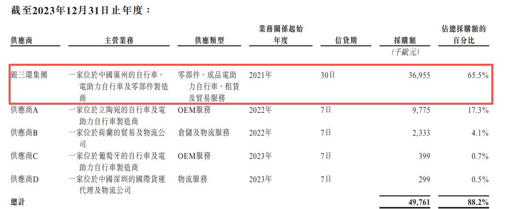 招股书披露,广州市银三环机械有限公司(下称“银三环”)及其附属公司在TENWAYS发展初期是其重要的供应商。银三环不仅向公司供应自行车零部件,提供成品电助力自行车的代工装配服务,还承接了公司用于生产自行车车架相关关键部件的模具设计与制造业务。