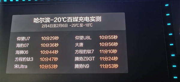 -20℃极寒不打折!比亚迪二代刀片电池10车充电实测:最快仅需10分29秒