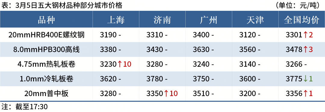 ◎3月5日,唐山迁安普方坯资源出厂含税上调10,报2920元/吨。