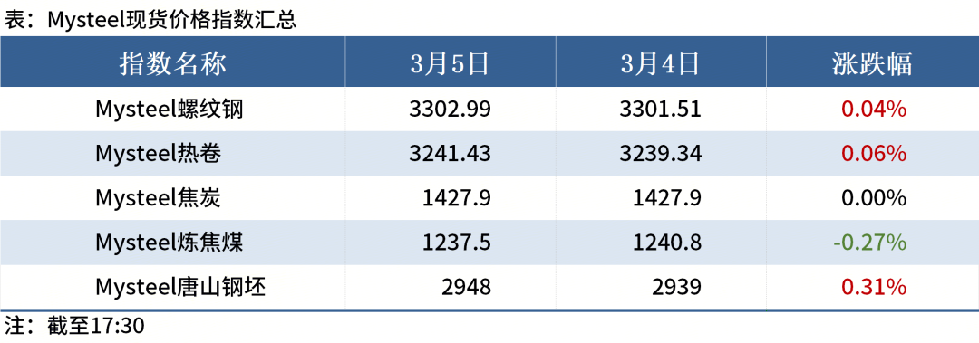 ◎截至3月5日,唐山23家样本钢企89座高炉:新增检修7座高炉,新增检修容积10680m3,日均影响铁水产量约2.73万吨,目前唐山钢企高炉共计检修20座,日均铁水影响量约6.32万吨。