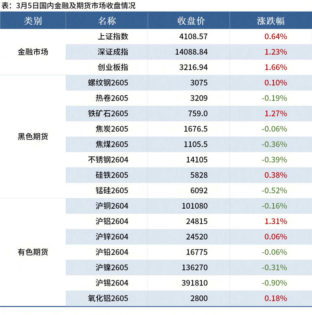 ◎3月5日,郑商所公告,将动力煤期货2703合约交易保证金标准为50%,涨跌停板幅度为10%。非期货公司会员或者客户单日开仓交易的最大数量为20手。