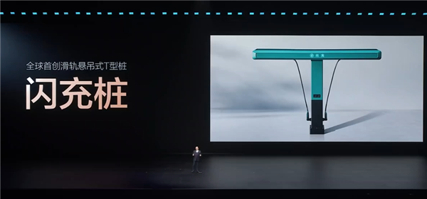 而与第二代刀片电池匹配的为比亚迪全新开发的闪充桩,单枪峰值充电功率1500kW,每一座闪充桩配备2把充电枪,两车同时充电,也能保证闪充状态。