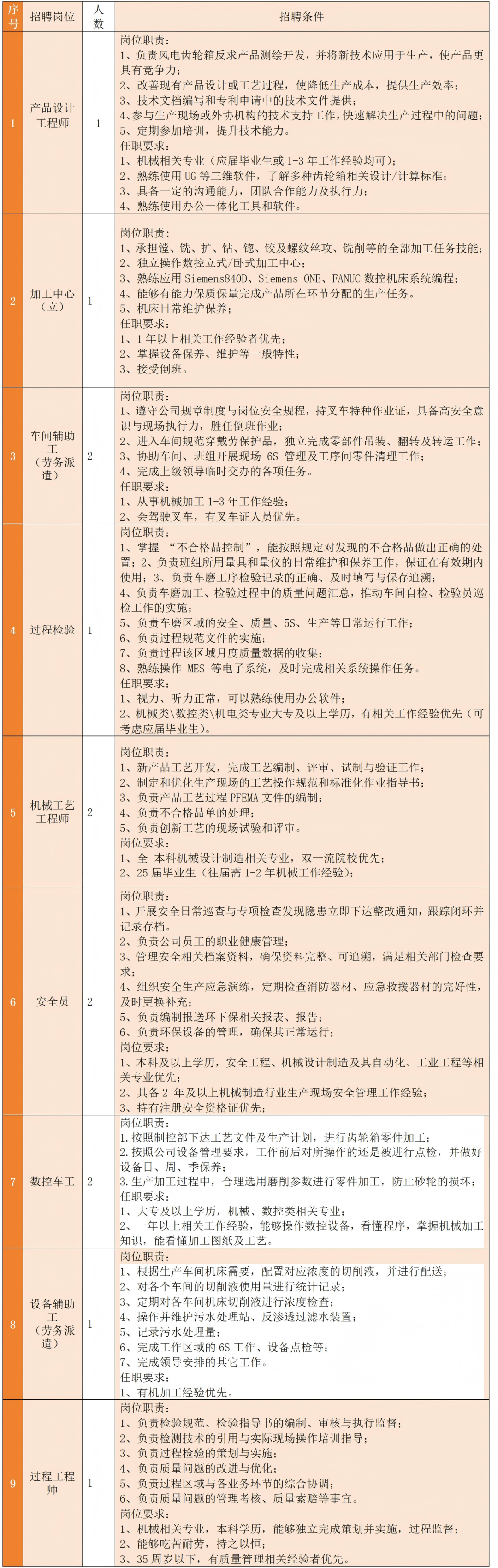 具体招聘要求见附表: