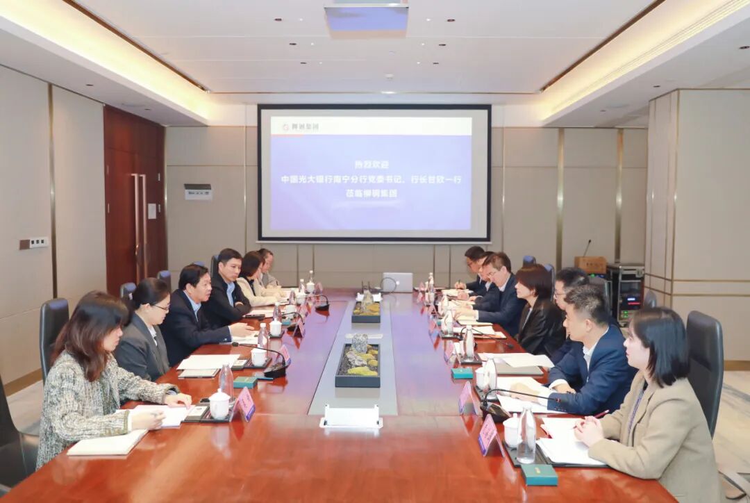 李斌介绍了柳钢集团“十四五”时期深化改革、“高端化、智能化、绿色化”转型发展和重点项目建设投资情况。李斌指出,面对行业深度调整周期,柳钢集团聚焦产业强链补链延链,因地制宜发展新质生产力,获评中国钢铁企业竞争力暨发展质量A+(极强)评级,保持国内最高的AAA级信用评级,这些成效的取得离不开光大银行等金融伙伴长期以来给予柳钢集团的鼎力支持。希望双方在良好合作基础上,进一步加强交流互信,在产线提档升级、绿色低碳、数智转型和拓宽国际业务等方面得到光大银行的金融支持,拓宽供应链金融、权益性融资等方面合作的广度和深度,实现银企互利共赢。