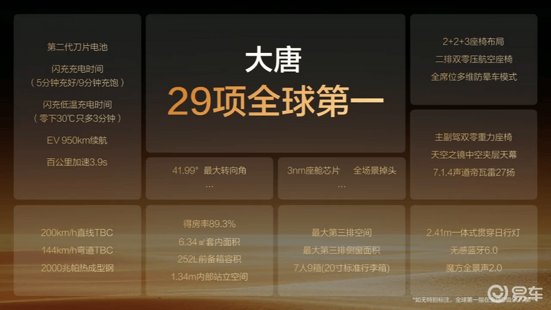 易车讯3月5日,比亚迪王朝网首款D级旗舰SUV大唐正式亮相。大唐搭载比亚迪第二代刀片电池、闪充以及天神之言等诸多黑科技。官方表示,新车将于今年上半年正式上市。