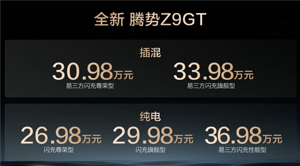 快科技3月5日消息,今日晚间,在第二代刀片电池暨闪充技术发布会上,全新腾势Z9GT正式上市,提供易三方插混和纯电两种动力,共推出5款配置车型,售价区间为26.98-36.98万元。