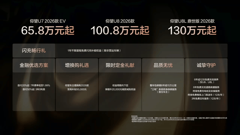 2026款仰望U7/U8/U8L鼎世版上市 售价65.8万元起