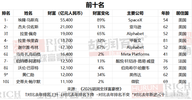 3月5日,《2026胡润全球富豪榜》正式发布,这是胡润研究院连续第15年发布“全球富豪榜”。榜单列出了来自2914家公司、73个国家的4020位十亿美元企业家,比去年的3442位增加了17%,总财富增加了28%。