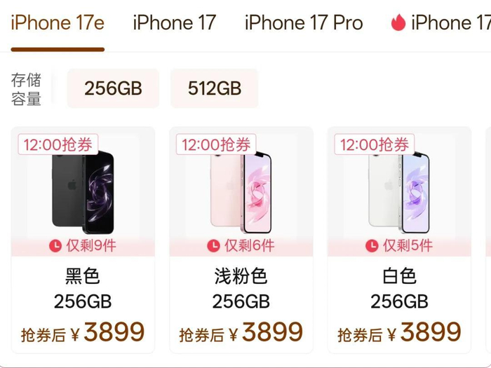 所以,虽然 iPhone 17e 售价 4499 元起,但在第三方平台最低 3899 起就能拿下,这个价格买一台 256GB 的新款 iPhone 还是比较值的。