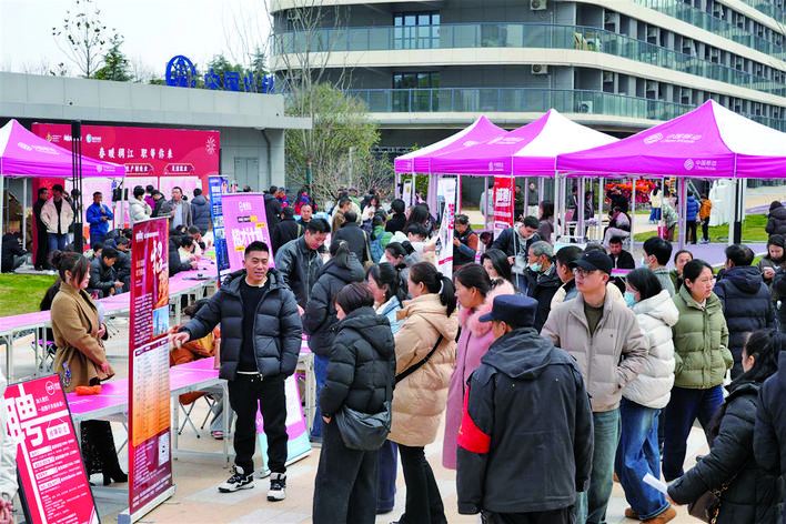 随后,城西、苏溪、义亭等镇街新春招聘会接续开展,把服务送到招聘会、把岗位送到家门口。3月4日,稠江街道新春招聘会颇具特色,百余家企业带着2000多个岗位来到恒风·寓见稠江青年社区,既方便住在人才公寓的青年群体“下楼求职”,又为前来求职的青年提供“上楼租住”的一站式服务,受到求职群体一致好评。