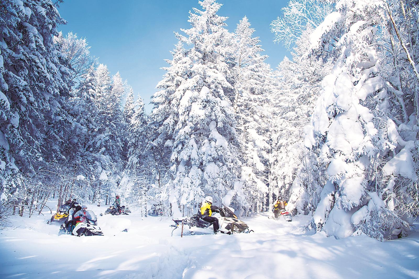 游客在长白山雪岭体验雪地摩托。