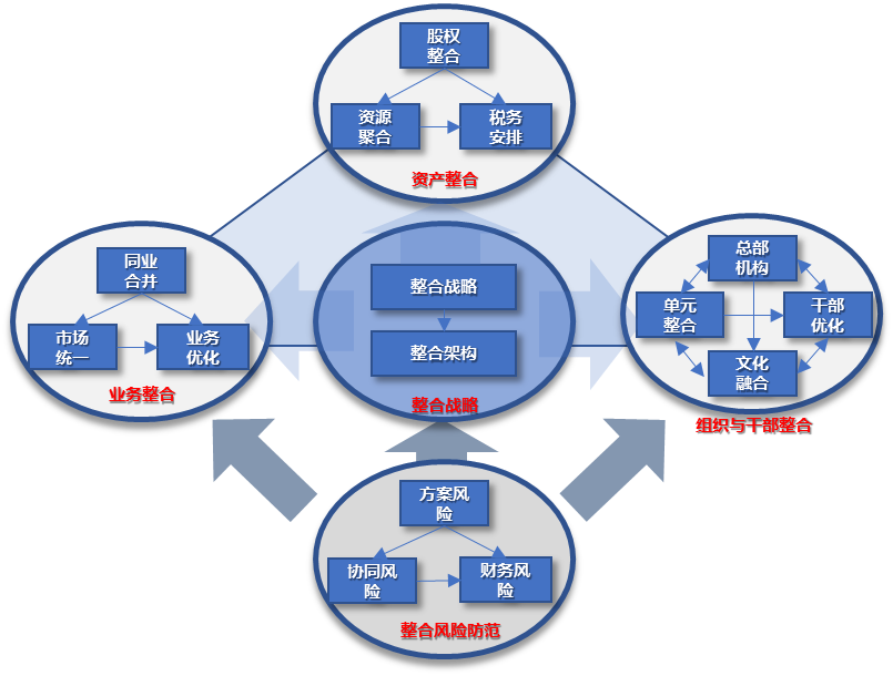 比如,国企集团开展重组整合,应该采取什么样的方法路线?那么“五环模型”,将为您破解这个难题。其中,国企整合“五环模型”包含整合战略、资产整合、业务整合、组织与干部整合、整合风险防控五大关键步骤。
