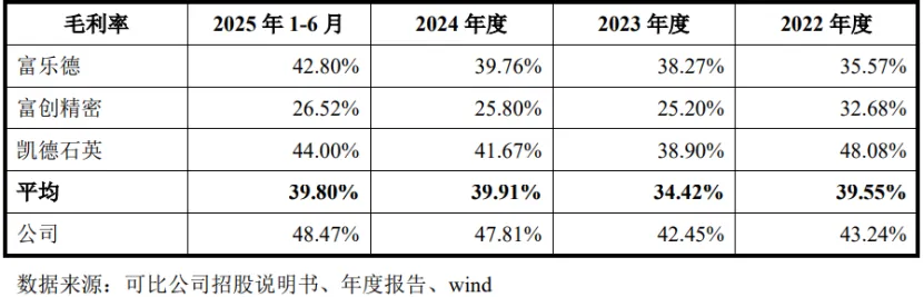 公司与同行业可比公司综合毛利率对比,图片来源于招股书