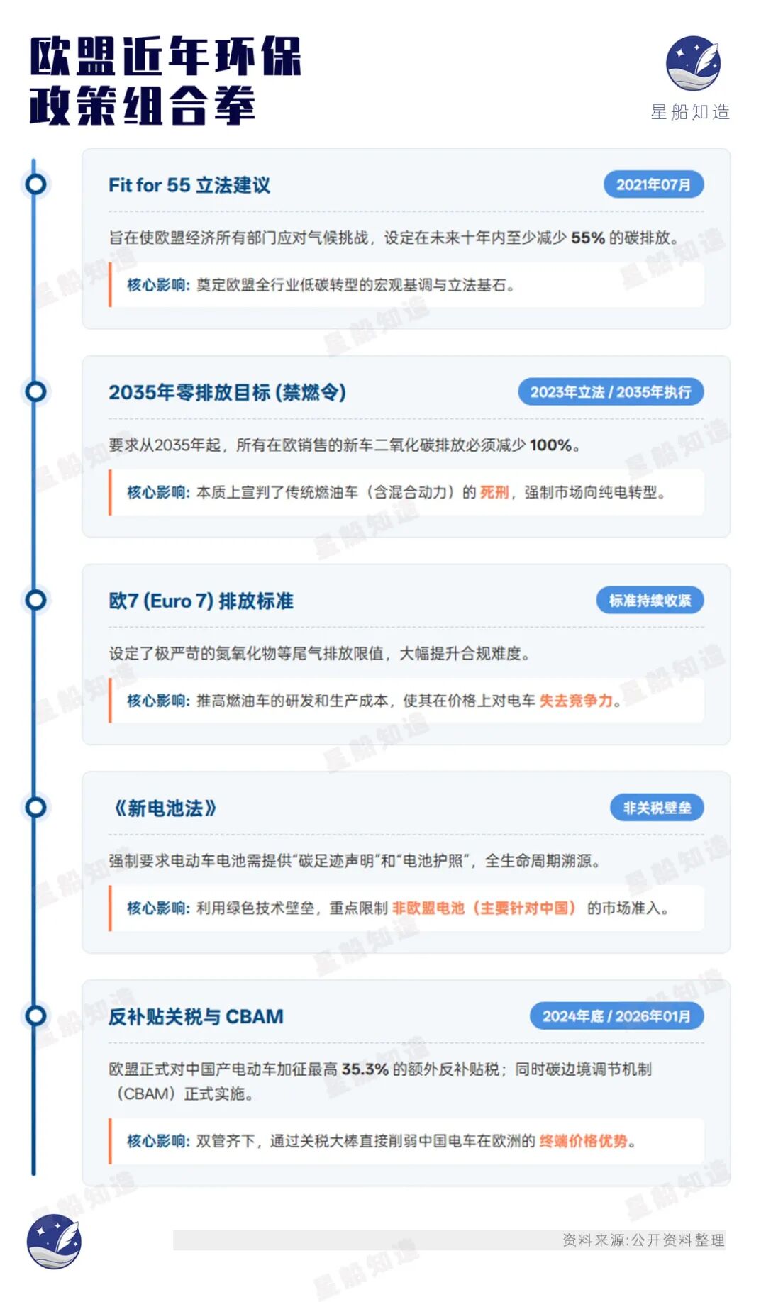 在此思路上,欧盟激进地推出一连串政策组合拳。《星船知造》大致统计如下