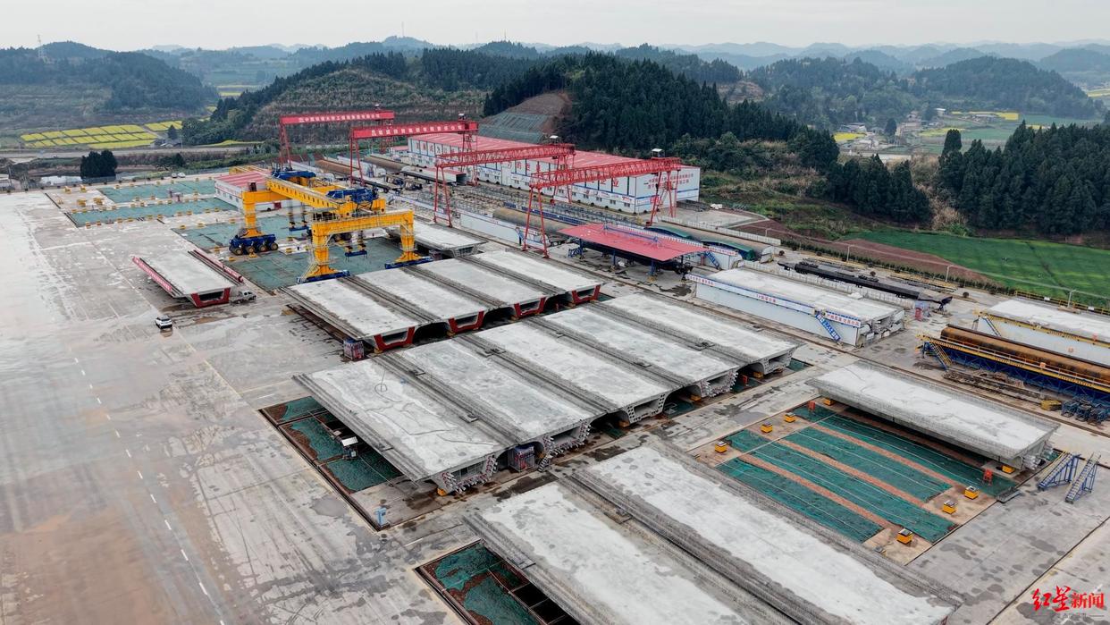 3月10日,红星新闻记者从蜀道集团获悉,今日上午,随着重达715吨的箱梁平稳落位,绵遂资内铁路项目绵阳至遂宁段遂宁制梁场圆满完成该段首榀箱梁架设任务,项目建设从下部基础施工迈入上部结构施工阶段,为后续桥梁工程规模化架设奠定基础。