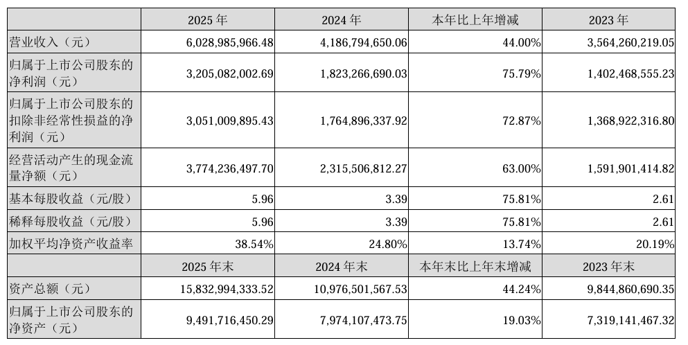 同日,同花顺(300033)发布公告称,2025年公司实现营业收入60.29亿元,同比增长44.00%;归属于上市公司股东的净利润32.05亿元,同比增长75.79%。