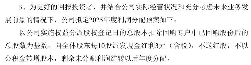 星宸科技(301536)公告称,公司拟定的2025年度利润分配预案为:以公司实施权益分派股权登记日的总股本扣除回购专户中已回购股份后的总股数为基数,向全体股东每10股派发现金红利3元(含税),预计派发现金红利1.26亿元(含税);不送红股,不以公积金转增股本,剩余未分配利润结转以后年度分配。
