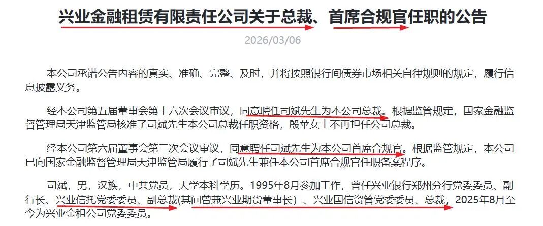 这位来自“兴业体系”的资深老将司斌,正式执掌兴业金融租赁,出任总裁兼首席合规官,监管核准已落定,他是从兴业信托走出的实力派高管,再度站上核心舞台!